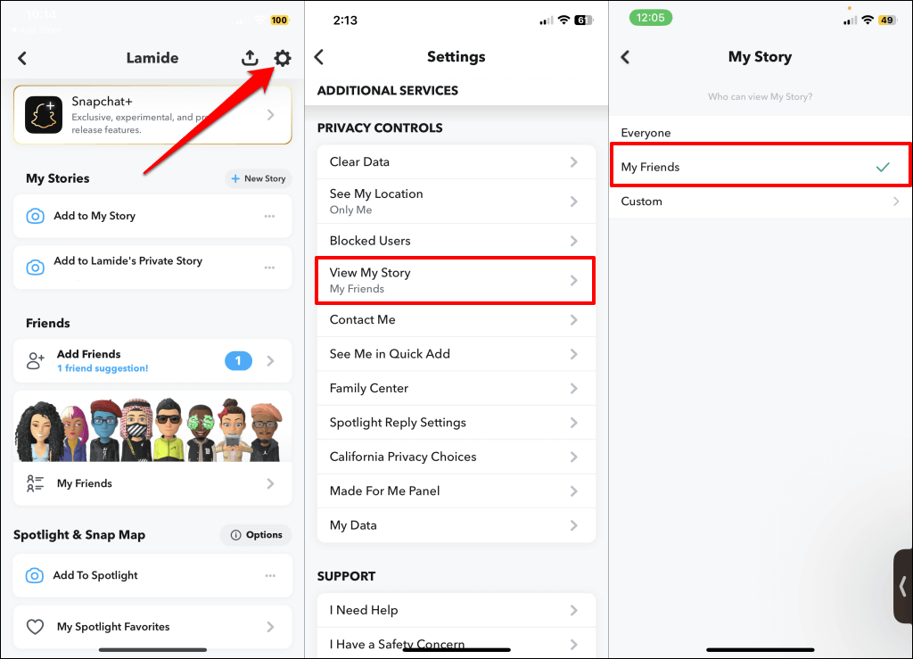 - Azt is ellenőriznie kell, hogy csak a barátok nézhetik meg a történetedet. Térjen vissza aBeállításokoldal, válasszonTekintse meg a történetemetA „Adatvédelmi vezérlők” szakaszban, és válasszaBarátaim-