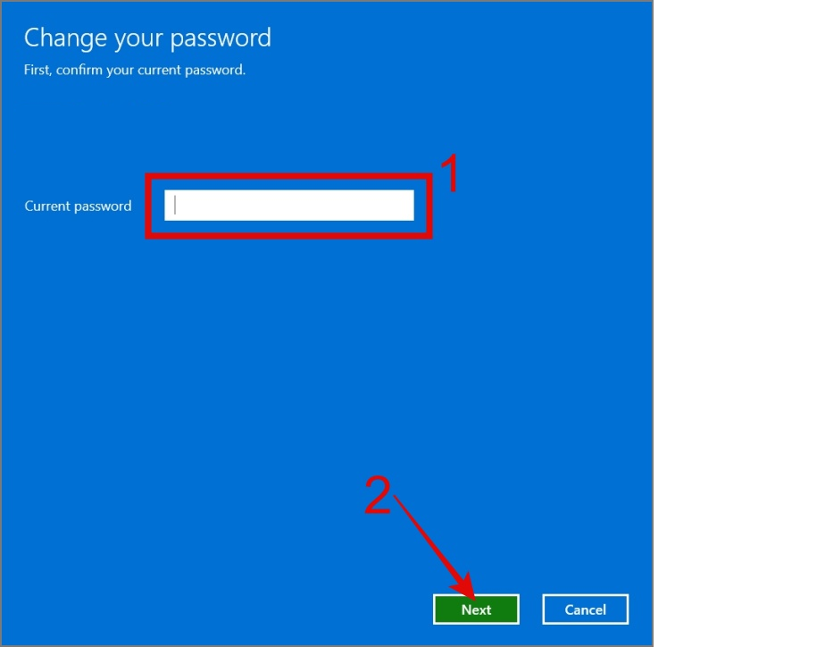 4. lépés:Írja be a jelenlegi jelszavát, majd a Tovább lehetőséget. Lehetőséget kap új jelszó megadására.