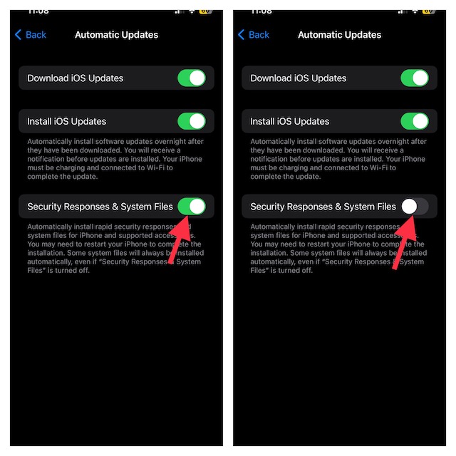 Ha már nem akarja kapni a Rapid Security Response szoftverfrissítéseket az iPhone/iPad -en, kikapcsolhatja ezt a funkciót.