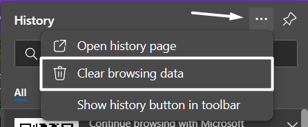 2.Kattintson ráhárom pont (…)aTörténelemgyors és válassza ki aBöngészési adatok törléseopciót a legördülő menüből.