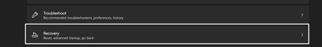1.Nyomja meg aWindows + Ibillentyűparancs megnyitásáhozBeállítások alkalmazásés lépjen aHelyreállításszakasz.