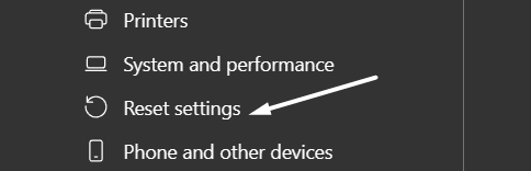 2.Válassza ki aBeállítások elemreopciót a legördülő menüből, és válassza kiBeállítások visszaállításaaz oldalsávról.