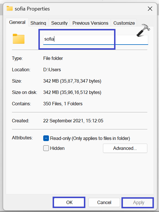 4. módszer: Átnevezze egy mappát a tulajdonságokból