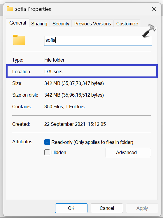 A mappa teljes elérési útja tartalmazza az átnevezni kívánt mappa elérési útját. Ehhez kattintson a jobb gombbal a mappára, és válassza a “Tulajdonságok„.