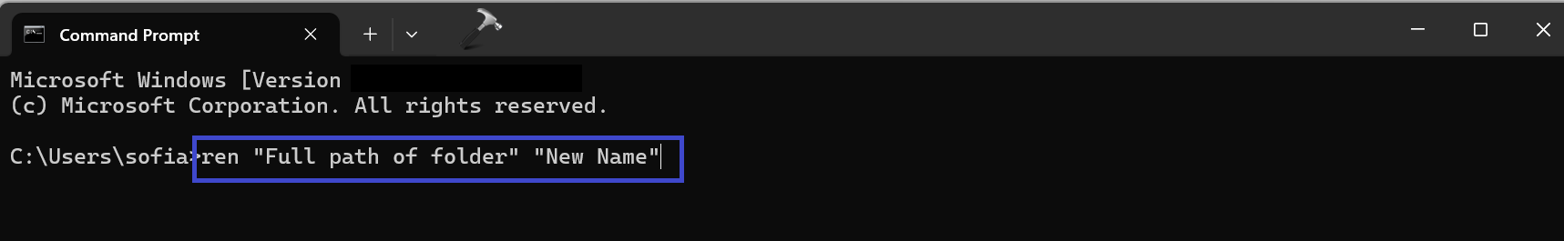ren "Full path of folder" "New Name"