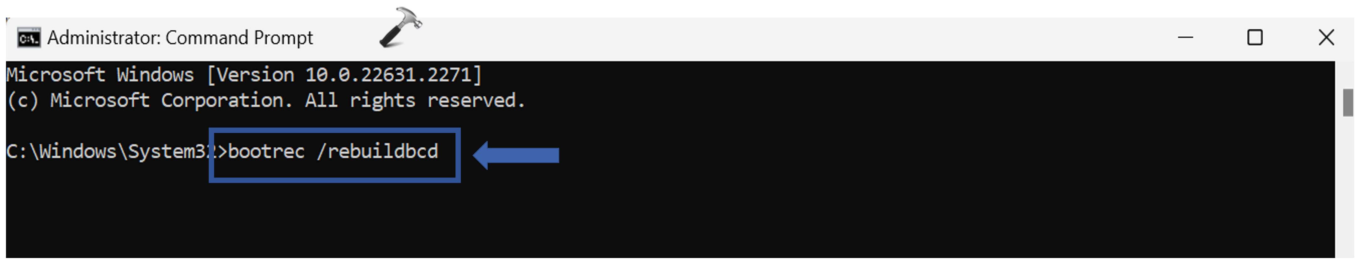 Abootrec /rebuildbcdA parancs újjáépíti a Boot Configuration Data -t (BCD). A BCD egy olyan fájl, amely információkat tárol a számítógépére telepített operációs rendszerekről.