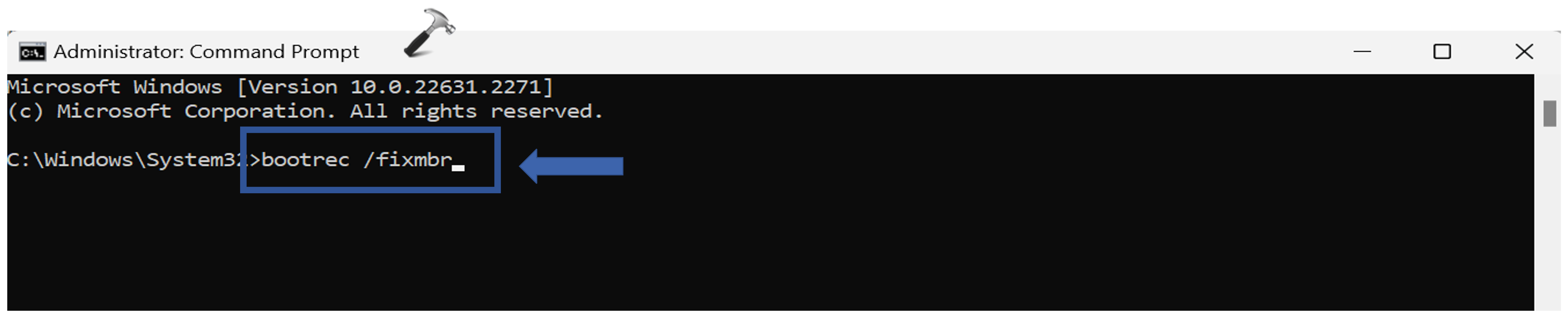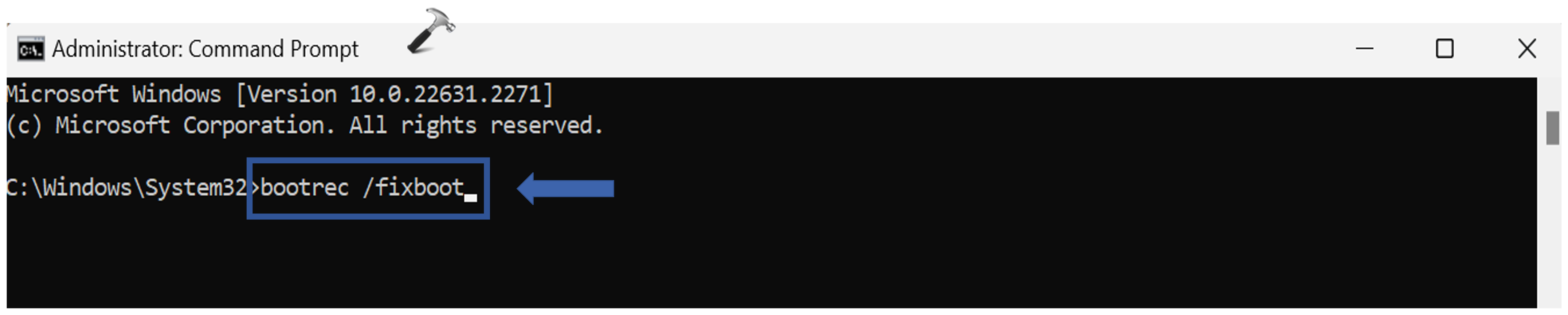 Abootrec /fixbootA parancs javítja a csomagtartó szektorot. A csomagtartó ágazat a merevlemez első szektora, és tartalmazza az operációs rendszert indító kódot.