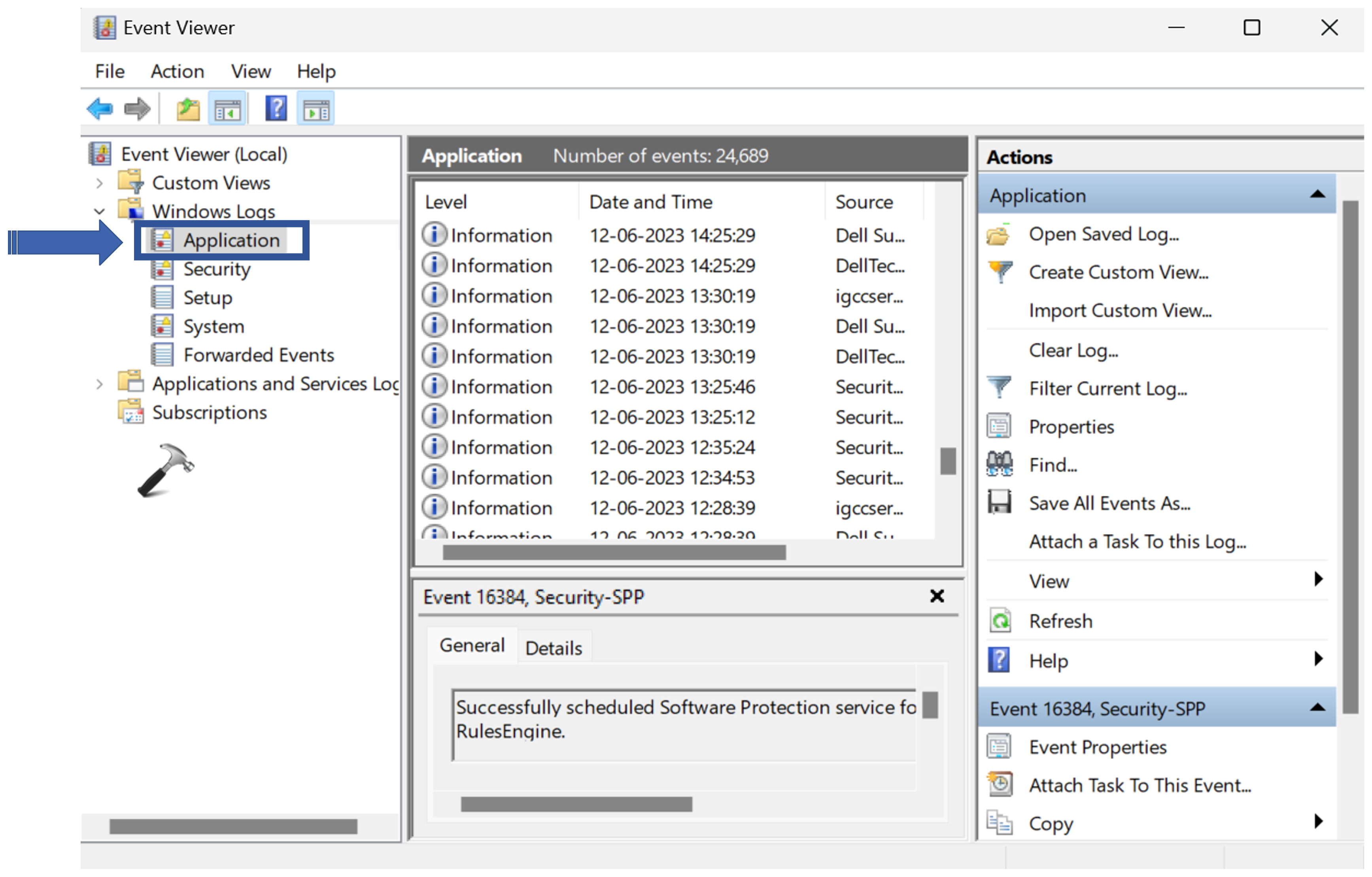 5. A bal oldali panelen bővítse a „Windows naplók”És kattintson a“Alkalmazás„.