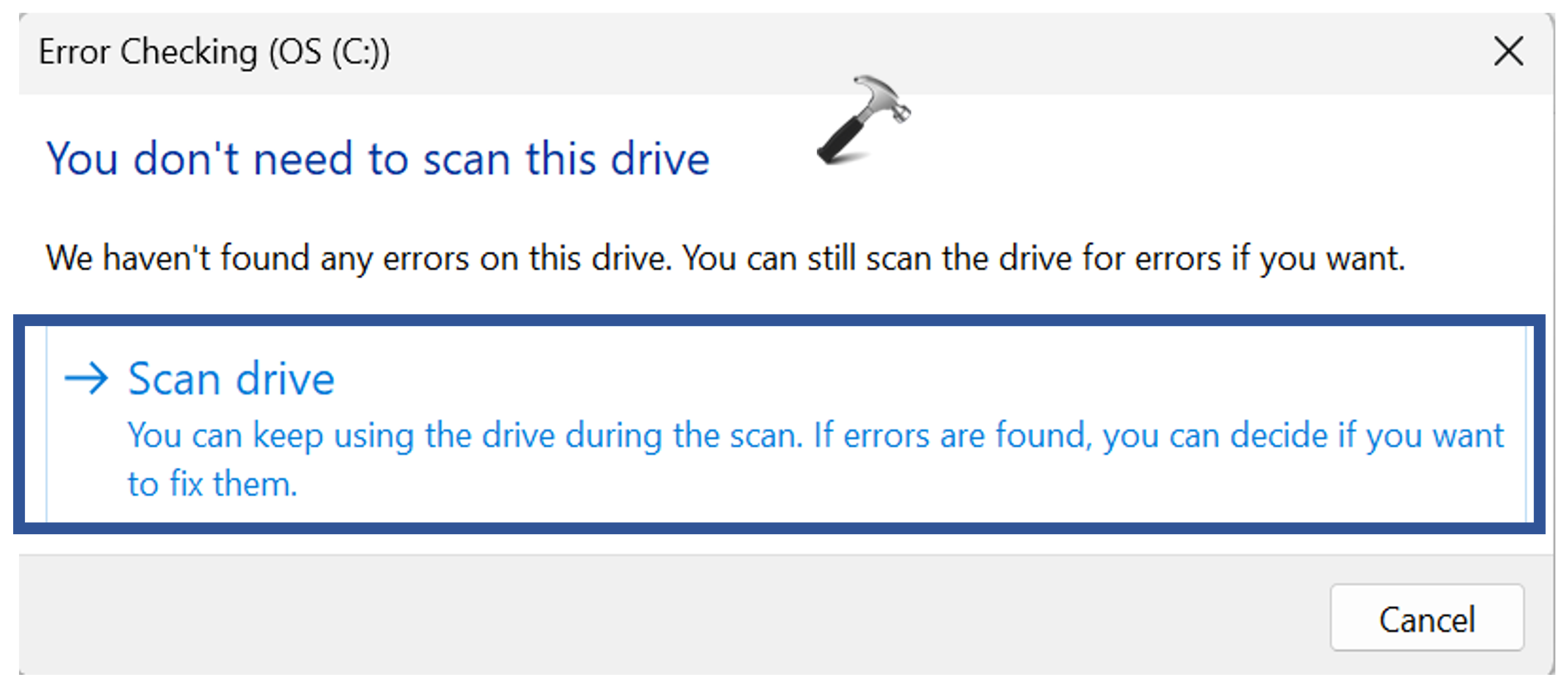 A Windows 11 rendszerhibákat fog keresni a meghajtóban, és ha bármilyen problémát talál, akkor ez lehetővé teszi a lemez javítását.