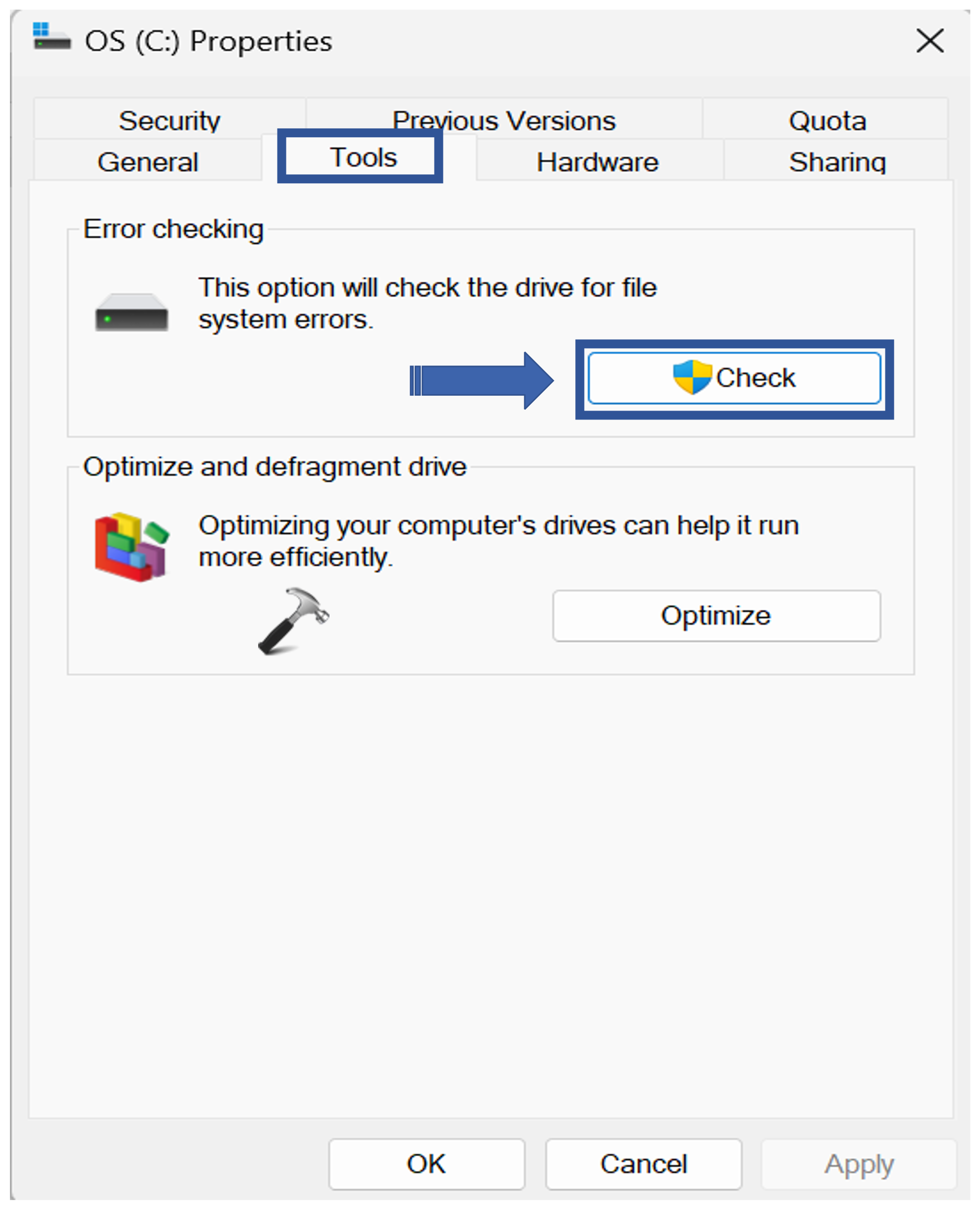A Windows 11 lemezén lévő rendszerhibának ellenőrzéséhez kövesse ezeket a lépéseket: