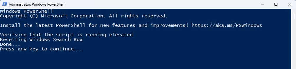 Jegyzet:A szkript sikeres végrehajtás után visszaállítja a Windows keresési beállításait.