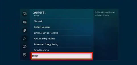 Ha a TV újraindítása nem oldja meg a problémát, próbálkozzon a hard reset végrehajtásával. Ezzel törli az összes okostévéadat, törli a Smart Hubba telepített tartalmat, és visszaállítja a TV szoftverét és firmware-ét a gyári alapértelmezett beállításokra. A gyári beállítások visszaállításának módja a következő: