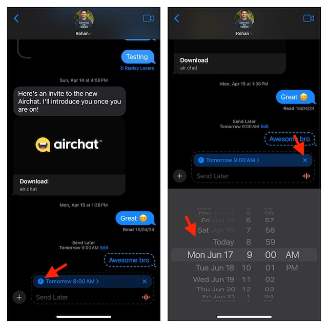 Hogyan működik az iMessage ütemezése iPhone-on? Nos, a folyamat meglehetősen egyszerű és intuitív. Miután beírta az üzenetet, kiválaszthatja a kívánt dátumot és időpontot, amikor az üzenetet kézbesíteni szeretné, és elküldheti. Ezután az ütemezett üzenet megjelenik a chatben, és a megadott napon és időpontban kézbesítjük. Addig is, ha szerkeszteni szeretné az ütemezett iMessage-üzenetet, vagy teljesen törölni szeretné, ezt ugyanolyan egyszerűen megteheti.