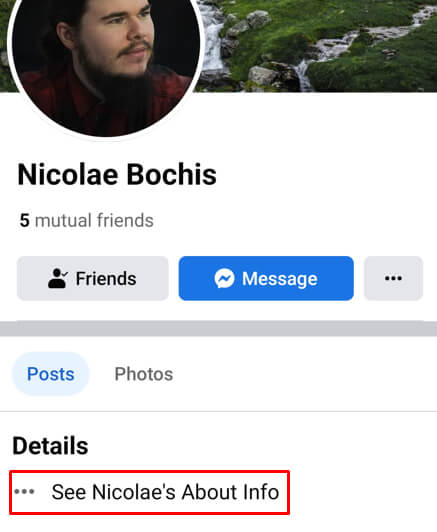 - Miután a profiljukon érintse meg aKörülbelülszakasz.