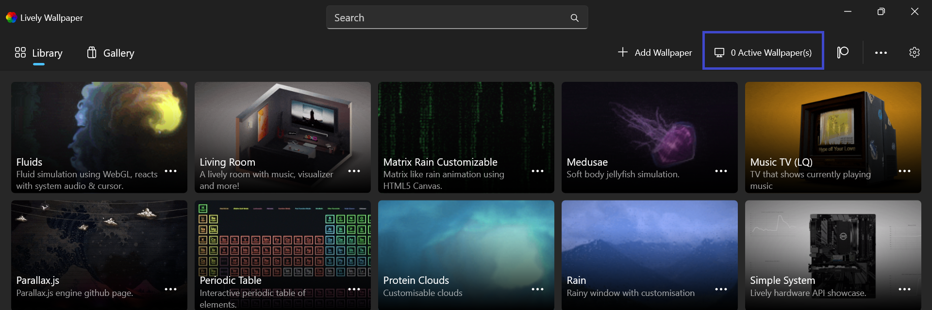 1. Nyissa meg az élénk háttérkép -alkalmazást, és kattintson a “Aktív háttérképek„.