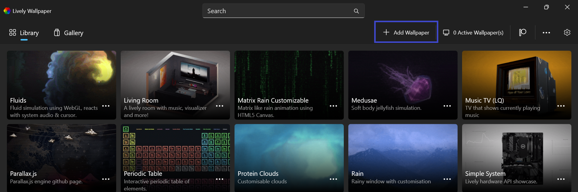 1. Nyissa meg az élénk háttérkép alkalmazást. Kattintson a “Könyvtár"-