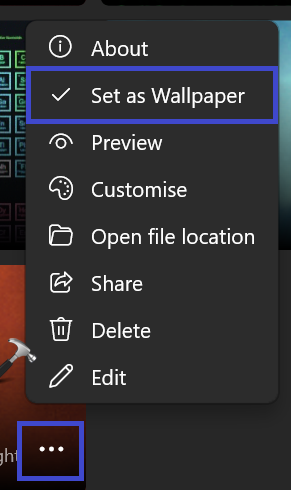 5. Következő, kattintson a három pontra, és válassza ki a „Háttérképként állítsa be”Opció.