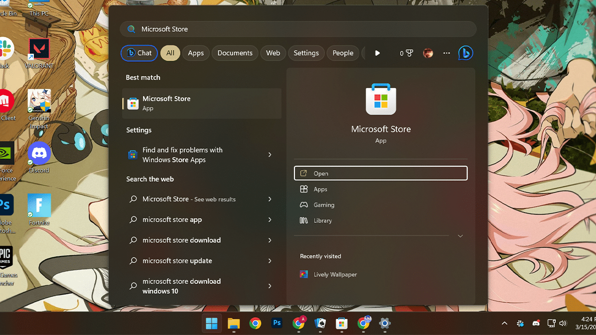 - NyitottIndul> KeresésMicrosoft Store> Kattintson aNyitottgomb.