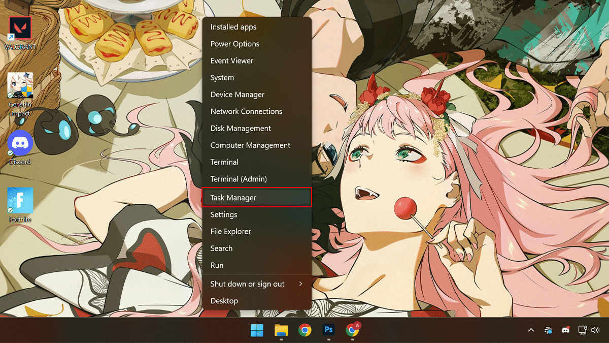 - Kattintson a jobb gombbalIndul> Kattintson aFeladatvezetőopció.
