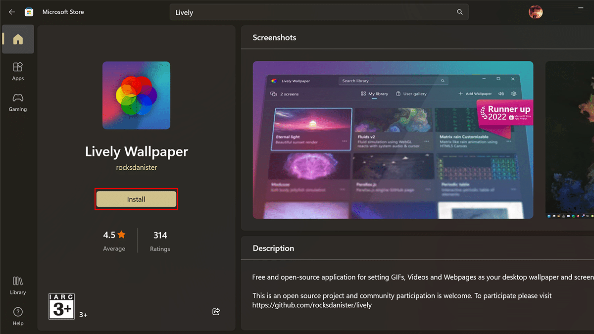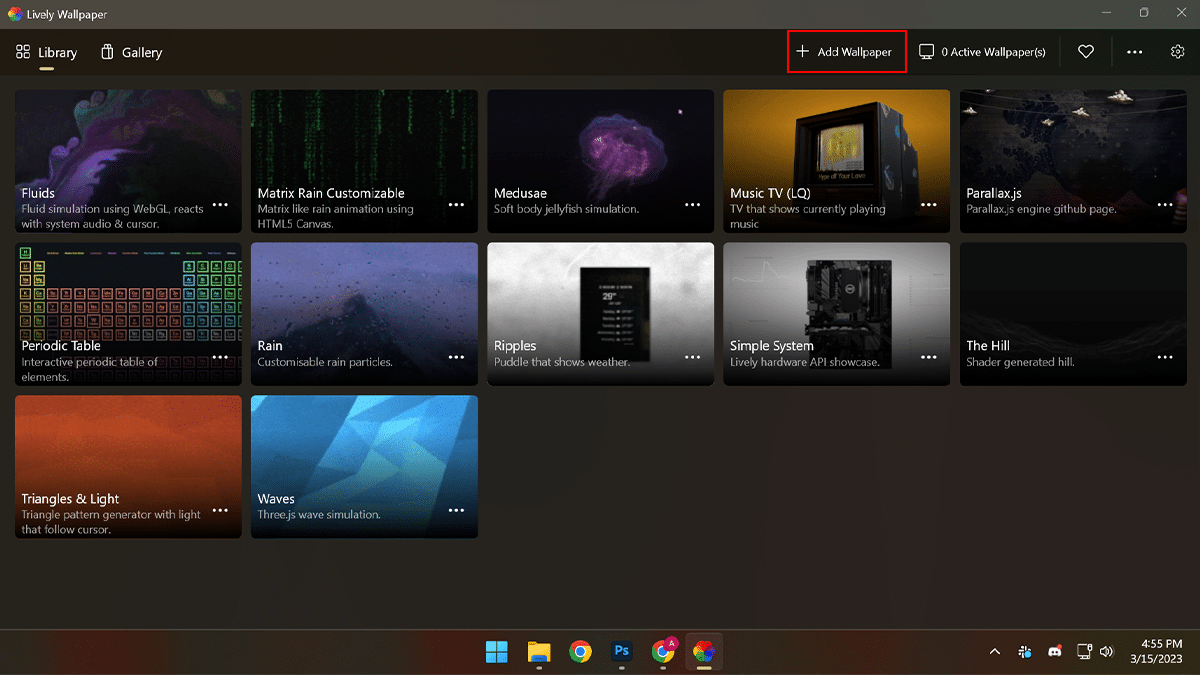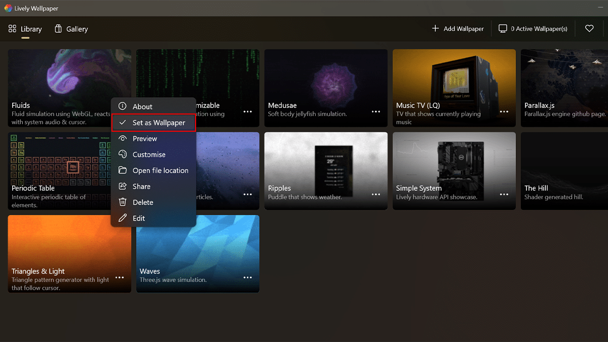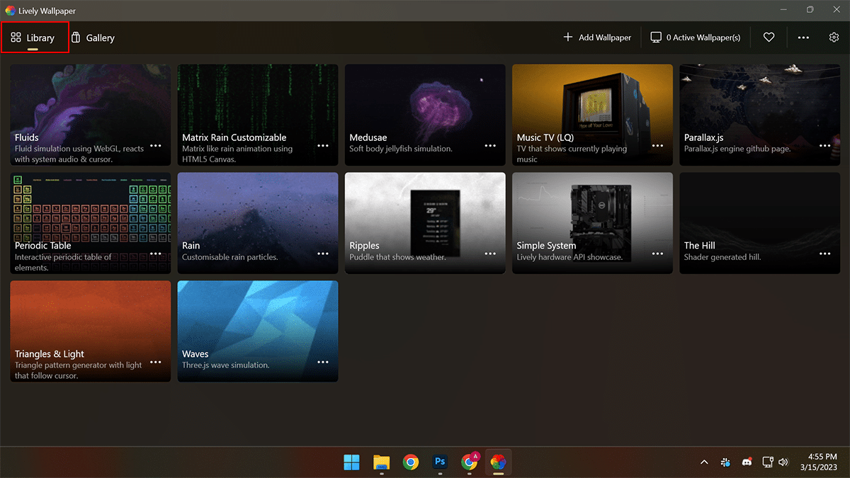 Az élénk háttérkép egy ingyenes és nyílt forráskódú alkalmazás animált asztali háttérképekhez. Ez lehetővé teszi a videók, weboldalak és GIF képek asztali háttérképekként történő beállítását. Ezenkívül számos élő háttérképet kínál könyvtárat, amelyek közül választhat, hogy a Windows 11 háttérként beállítsa.