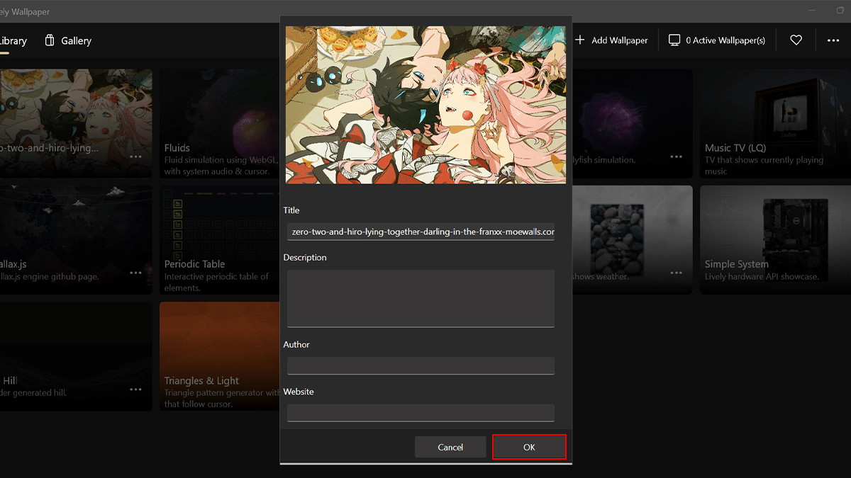 - Opcionális: Ha nincs élő háttérképe, letölthet néhányat a weboldalról ”Moewalls”Nagy felbontással.