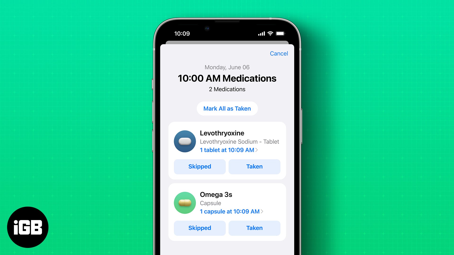 Hogy kritikus figyelmeztetéseket kapjon a gyógyszereire, Kövesse a lépéseket az iPhone esetében látható módon.