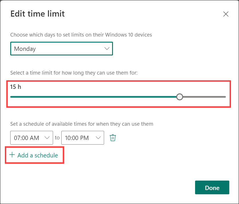 A Microsoft lehetővé teszi a napi korlátozás beállítását a gyermek képernyő idejére. Beállíthat olyan időpontokat is, amikor a készüléket megengedik vagy korlátozják a használatától. Például beállíthat egy olyan szabályt, amely szerint nem használhat eszközöket 9 és 6 óra között.