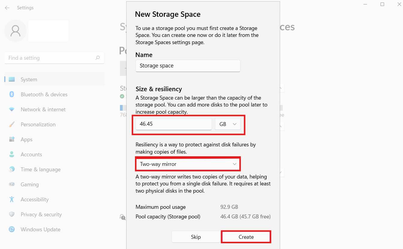 2. módszer: Konfigurálja a RAID 1-et a Storage Spaces segítségével