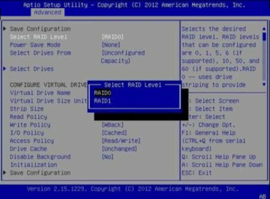 3. Ezután nyissa meg a firmware RAID segédprogramot, és hozzon létre egy RAID 1 tömböt a két meghajtó segítségével.