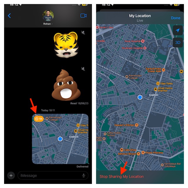 Hagyja abba a helyének megosztását az iMessage -on keresztül az iPhone -on az iOS 17 -ben