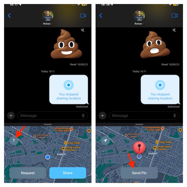 Ossza meg a PIN -kódot az aktuális helyrőlVia imessage -on az iPhone -on