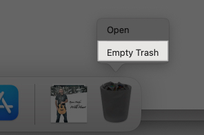 Először távolítsa el a régi letöltéseket, a fájlok másolatát és a fel nem használt alkalmazásokat a Finderből. Ezután kattintson a jobb gombbal aKuka ikona dokkján, és kattintsonÜres szemét-