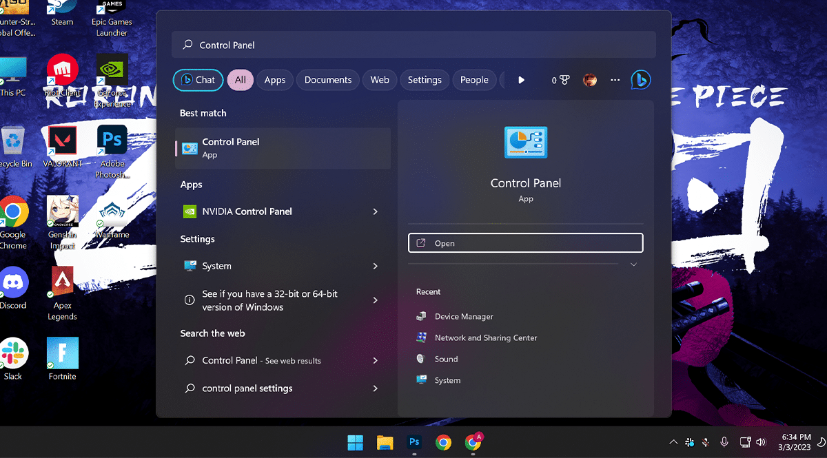 - NyitottIndula Windows 11 -en> KeresésVezérlőpultÉs kattintson aNyitott-