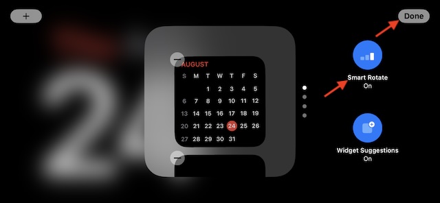Bármilyen okból kifolyólag, ha nem rajong a widgetek intelligens forgatásáért, vagy saját tempójában szeretné vezérelni a widgeteket, gond nélkül letilthatja. Csak hozza létre a Készenléti módot -> érintse meg és tartsa lenyomva az első képernyőt -> érintse meg az Intelligens forgatás gombot a letiltásához, majd nyomja meg a Kész gombot a befejezéshez.