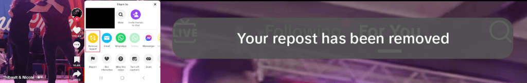 A Tiktok Repost funkciója ugyanúgy működik, mint a Twitter retweet funkciója: A tartalmat újra feloszthatja a barátaival és a követőivel, és jóváírhatja az eredeti alkotót. Mivel a Repost gomb a megosztás menüben lévő többi gombhoz közel van, túl könnyű egy videót akaratlanul újratölteni. Ha véletlenül újratelepít egy videót, vagy újratelepít valamit, akkor bármilyen okból meggondolja magát, akkor örömmel hallja, hogy gyors és egyszerűen megsemmisítheti vagy törölheti az újratelepítést.