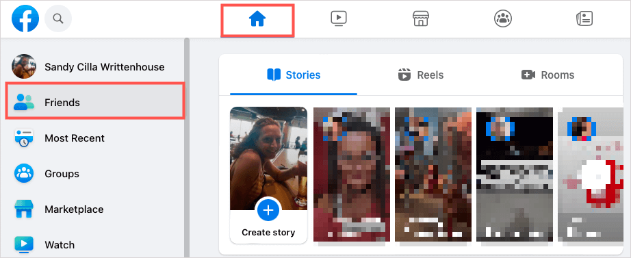 - Menj aOtthonoldalt a felső navigációs panelen található ikon segítségével. Akkor válasszBarátoka bal oldali oldalsávban.