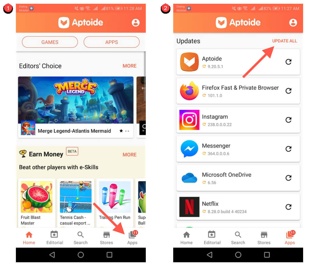 Frissítse az összes alkalmazást: Váltás aAlkalmazásokÉS Koppintson a fülreFrissítse az összeset-