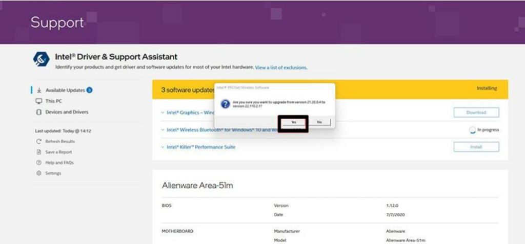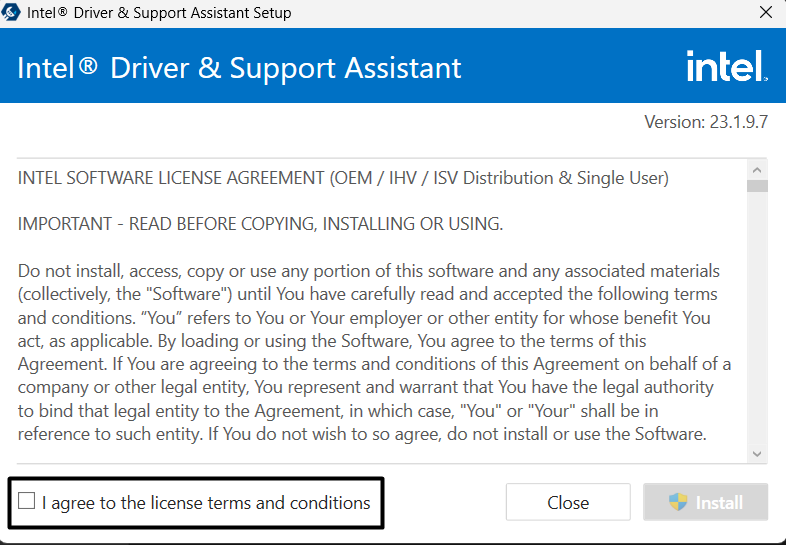5.Kattintson aBeillesztgombot, majd hagyja, hogy az Intel illesztőprogram és a támogatási asszisztens alkalmazás telepítse a készüléket.