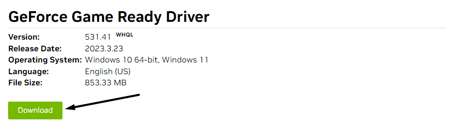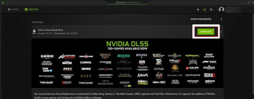 7.Ha talál aGeforce Game Ready sofőrFrissítse, kattintson aLetöltésgomb a frissítés letöltéséhez.