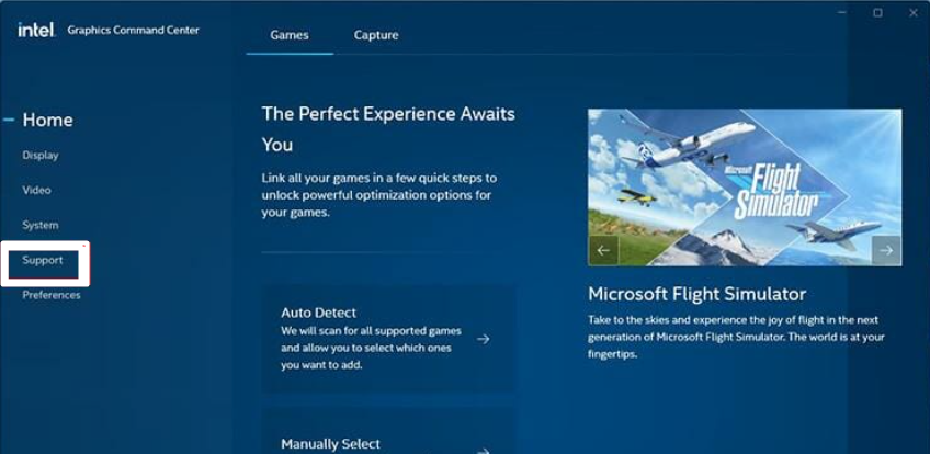 5.Indítsa el az Intel illesztőprogram és a támogatási asszisztens alkalmazást a rendszerén, és válassza kiTámogatása bal oldali ablaktáblában.