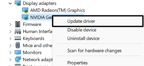 2.Kattintson a jobb gombbal a grafikus adaptert aAdapterek megjelenítéseszakasz és válasszonFrissítse az illesztőprogramottőle.