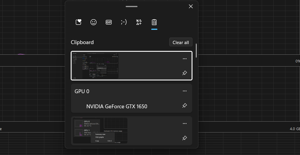 4.Végül használja aWindows Logo Key + Vparancsikon a megnyitáshozVágólapés ellenőrizze a grafikus kártya modelljét.