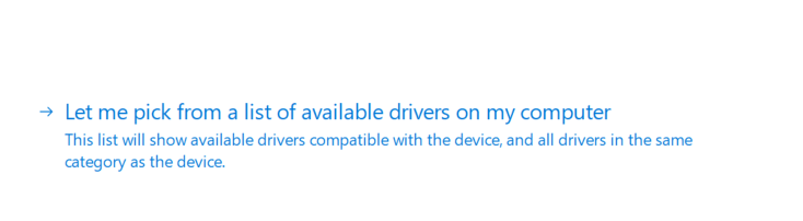 4.AKeresse meg a számítógépeimet a járművezetők számárafül, kattintson a gombraHadd válasszam a számítógépemen elérhető illesztőprogramok listájáról-