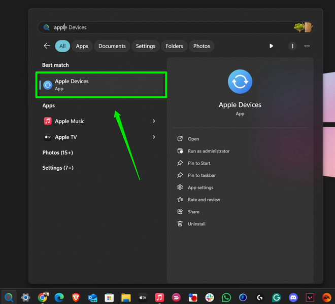 1. Keresse meg és indítsa el az Apple Devices alkalmazástA Windows 11 eszközén.