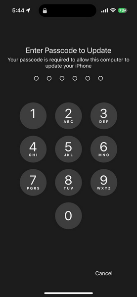10. Helyezze be a jelszót az iPhone -raA frissítés megerősítéséhez.