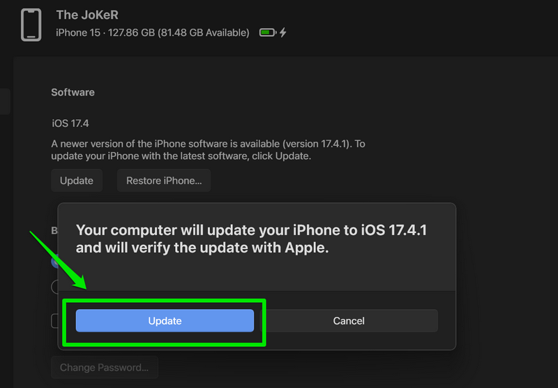 6.Miután az iOS frissítés letölthető, kattintson aFrissítgomb.