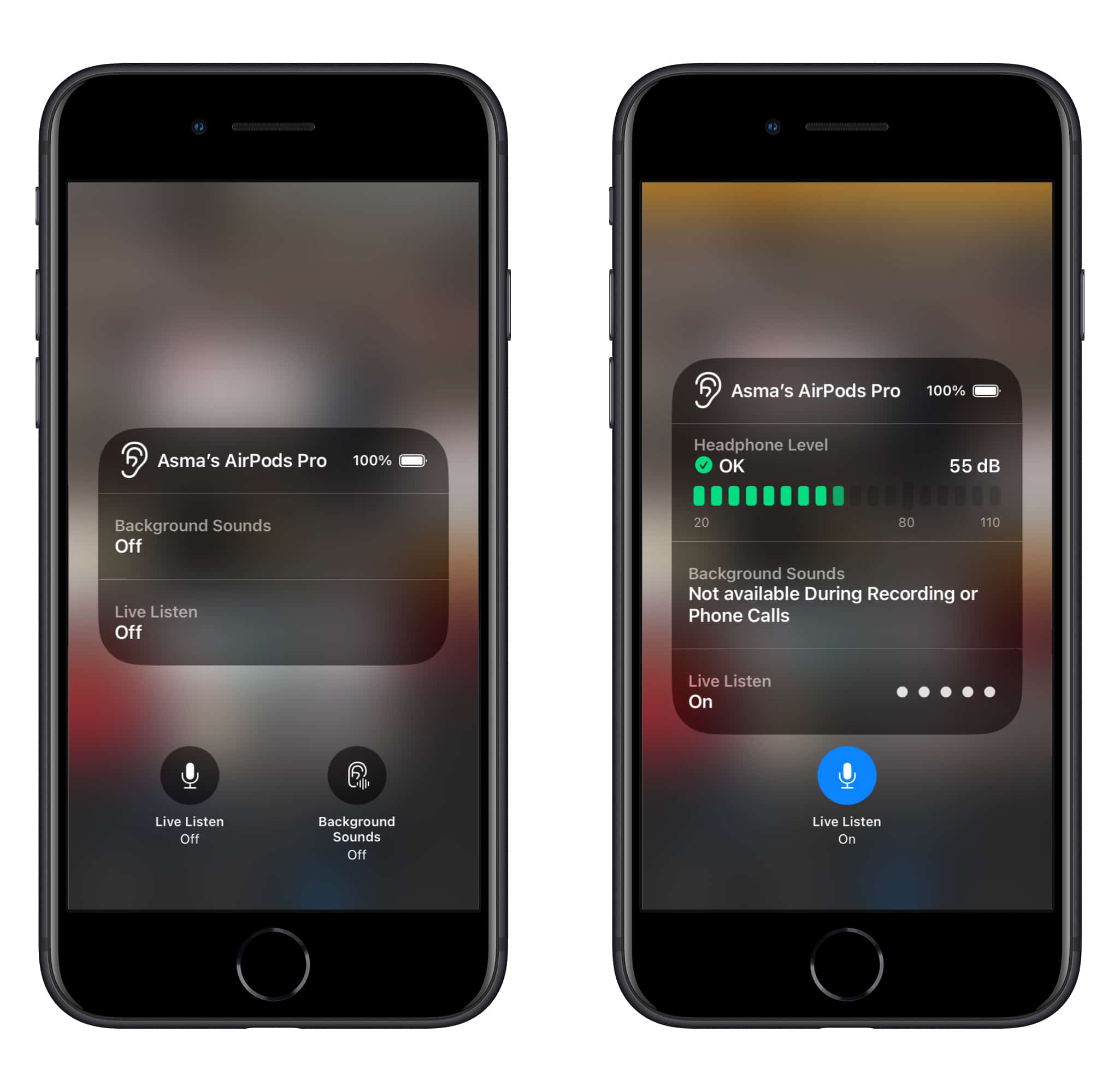 Az élő hallgatás és az AirPods felállításakor most már az AirPods hallókészülékként használhatja. Tegye a fülébe az Airpod -ot, és közelebb helyezze az iPhone -ját a hallani kívánt hang forrásához. Az élő hallgatás akár 50 méter távolságra is felveheti a hangot, így felhasználhatja azt is, hogy meghallgassa valaki, aki a szobán keresztül beszél.