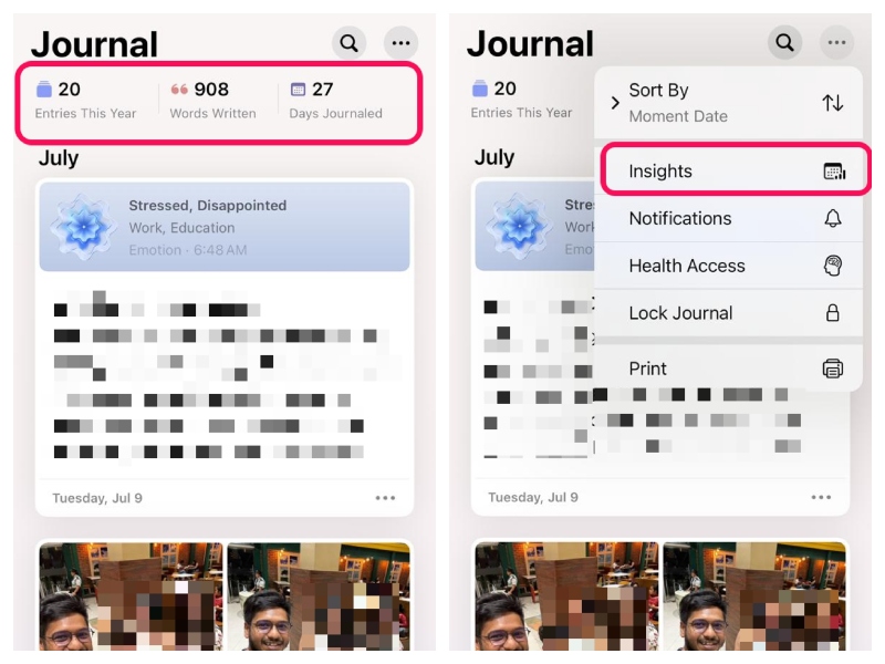 Most, hogy van egy ötlete az összes új funkcióról és változtatásról, amely az iPhone-on a Journal App-hez érkezett, a legújabb iOS 18 frissítéssel, vessen egy pillantást az alábbi alszakaszokra, hogy megtudja, hogyan működik mindegyik.