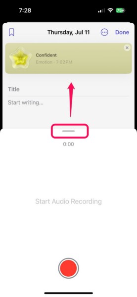 4.Jelenleg,Érintse meg és tartsa be a fogót, és csúsztassa felA hangfelvétel felhasználói felületének kibővítéséhez.