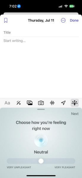 A Journal alkalmazásban a gondolkodásmód integrációját a legújabb iOS 18 frissítéssel adták hozzá. Tehát a felhasználók most egy dedikált felhasználói felületen naplózhatnak a lelkiállapotukon a folyóiratbejegyzésekben, hogy további összefüggéseket biztosítsanak érzéseikről.